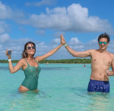 🌊 Parada en la piscina natural Laguna Azul para disfrutar de un banco de arena en medio del mar.
