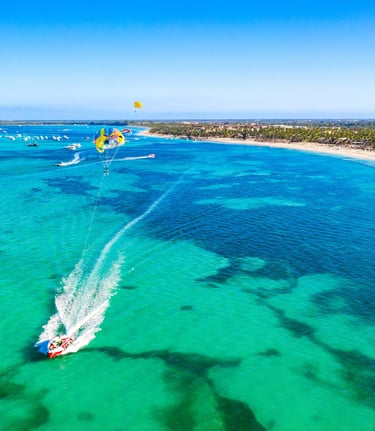 🚤 Paseo en lancha rápida hasta Isla Saona con impresionantes vistas del Caribe.